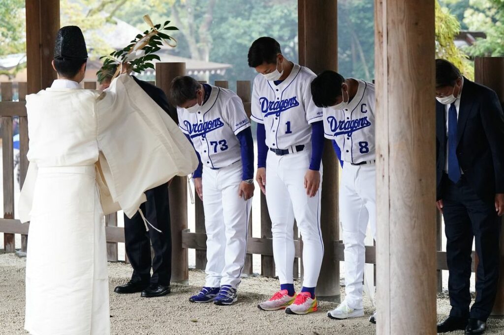 開幕を前に名古屋市熱田区の熱田神宮を訪れ必勝祈願する立浪監督、京田選手会長、大島キャプテン Chunichi DragonsChunichi Dragons Official MediaNPB Central LeagueOfficial Media中日ドラゴンズ NPBHUB.COM | The Fanbase of Nippon Baseball & Nippon Professional Baseball