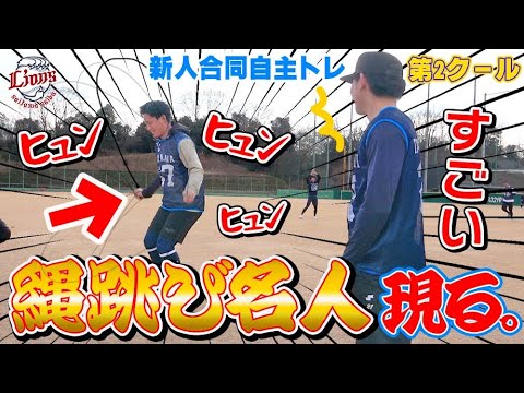 練習開始前に縄跳びでアップする #武内夏暉 投手。