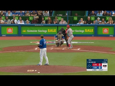 Reynolds 10 to Reynolds that’s a fair ball inside of first two hit day for Reynolds who’s looking at two backs throw from low is shot to right center field that’ll get the job done for the Reds it Scoops its way all the way to the edge of the