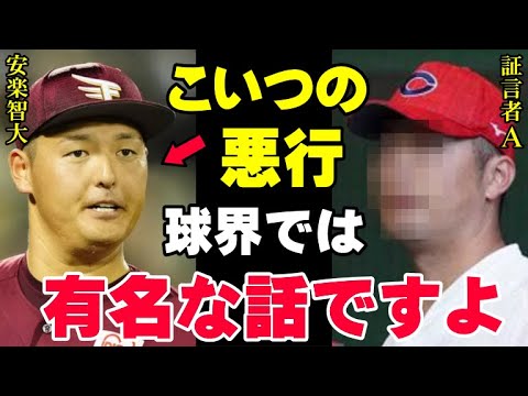 そのまま持ち込む安楽のような人物がいて も不思議ではありませんスポーツライター そういえば安楽は再備口愛媛3年時に部内 での向上的な暴力といじめが発覚し1年間 の大外試合禁止処分が言い渡されました 上級生が火九生にカムを食べさせたり灯油 を飲ませようとするなど悪質極まりない 行為は大きな批判を集めました反落本人は この件に関わっていないとされましたが一 位指名を検討していた一部球団はプロ入り 後にその問題が蒸し返されて加害者の1人 として名前が出るようなことになったら 困るなどとして指名回避をしたとされます 仮に楽天を首になっても救いの手を 差し伸べる球団があるのでしょうか まだまだすごい事実が出てきますこちら ですパワハラ疑惑の安楽とひに数年越しの 伏線回収化悪い意味で9年前の楽天入団 コメントまさかの最注目同僚選手への パワーハラスメントパワハラ疑惑が報道さ れたプロ野球東北楽天ゴールデン イーグルスの安楽智投手に関して安楽投手 が2014年の入団時に残した決意の コメントがx旧Twitterで最注目さ れています安楽投手を巡っては2023年 11月25日複数のメディアが若同僚選手 へのパワハラ疑惑を報じました複数の選手 が安楽投手からたハラスメント行為を団に 訴えていたとのことで安楽投手の契約公開 交渉は無期限延期と報じられています球団 は25日安楽智博選手の報道についてと 題した公式サイトでの発表でファンの皆様 及び関係する全ての皆様に多大なるご迷惑 とご心配をおかけし心よりお詫び申し上げ ますと謝罪し現在調査確認をしております 球団として事実確認に向けて真士に 向き合い対処すべく取り組んでまいります などと述べていますSNSでは2014年 10月の入団時に安楽投手が残した決意の コメントが年越しに最注目を集めています 安楽投手は14年のドラフト会議で楽天が 一位指名で交渉券を獲得していました当時 の球団の投稿には楽天のキャップをかぶり はにかんだ学生副姿の安楽投手の写真に 日本で誰も手がつけられないような手に なりたいと語ってくれ 本備高等学校の安楽智選手に指名のご挨拶 に行ってまりましたとのコメントが添え られていましたパワハラ疑惑が報じられた 23年11月25日以降日本で誰も手が つけられないような投手になりたいとする 当時の決意が皮肉な形で現在の疑惑と 重なることから引用リポストなどがついで います違う意味のやばい方で手がつけられ なくなってて草いや安楽選手がやってる