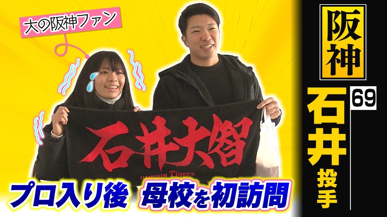 石井大一投手が通っていた秋田市島にある 秋田工業高等専門学校秋田高です理系の 専門科目を5年間学ぶ秋田高石井投手は ここで野球と勉強を両立しまし た阪神入団後母を訪れるのはこれが初めて です こんにちはあ野球の あすいませんあかちゃん ああのマネージャーおでしたみんな普通に あれですね普通にあっちゃいますね普通に あって普通に会話し ます距離を感じますけどいなんか スーパースターなちゃいやいや僕こっち側 からな い スーパースター変わって ないも一緒なんすよああそうなんですか はいはいはいはいでそのまま大きく大きく な誰です か松田先生がちょっと使っててでここが 松田県ですはいはいでえっとここがねあの 伊君の板屋僕僕の板屋でしたけどそう なんか随分いや変わっちゃいましたねねあ もう本当入団した当時から知っててずっと も子供の頃か神ファンだったんですごい 嬉しくていいいい取れましたねいいのが 取れましたよ えすごいすごすごくても自分のいる学校 からまさか阪神の選手が出ると思わなくて それでは阪神タイガースの石井第一投手が えいらしゃってますえ大きな拍でお迎え ください どうぞ 今日は秋田光線に通う後輩たちが集まって 阪神の日本一を改めて祝福しまし た努力を積み重ねていけばその時間の使い 方っていう変わってきますしその自分の夢 とか何かなりたい自分になれると思うので 本当に今の時間を大事にはい頑張って ほしいと思いますはい私も あ 去年は中継投手としてチームに欠かせない 存在としてフル回転の活躍を見せた石 投手学生たちの注目どもこれまで以上に 高まりまし た石井投手が校内で最後に向かったのは の原点となった 場所見たことある練習見たことあるもう ずっとここでやってましたから ねここはプールを回送した野球部の室内 練習場 ですあのこのマットなんすかこのマットは あのここマウンドがないのであのこれで高 さを作ってマウンドに似せてここで ピッチング練習とかしてたんですよそう