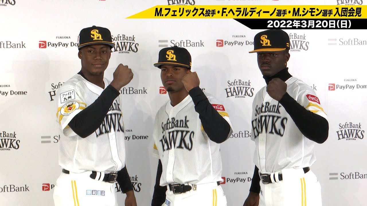 Fukuoka-SoftBank-Hawks: ホークス公式  M.フェリックス投手、F.ヘラルディーノ選手、M.シモン選手 育成入団会見