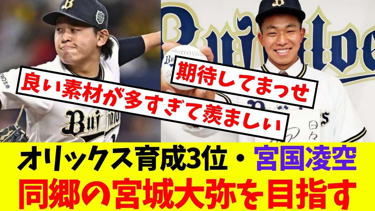 オリックス育成3位宮国陸東京の宮城広谷 を目指す東京勝中学時代に在籍したチーム も同じギノワンポニーズポニーリーグ日本 代表に選出された経歴まで偉大な先輩と 同じ道を歩んできた身長1m71の先輩に 対し奥も身長が小さい方なので投球 スタイルも似てくると思う組み立て方も 聞いてみたい1日も早い支配か昇格を 目指し同じ部隊で一緒にを回っていけたら いいなと思うとその先に一分での共演を 夢みている森はドラフト上位からでも回 からでも育成からでも主力が育つチームだ から期待してませんオリックスの育成選手 は今回指名された選手だけでなく現在在籍 してる選手も含め良い素材が多すぎて 羨ましいそれにしてももう憧れの先輩枠に なる宮城のすごさよ沖縄自身の高察選手で 活躍する共通のポイントはナプルな餌が ないこと宮城をしっかり見習って高校から 圏外なのでドラフト時に存在を知りました オリックス大学に入学したつもりで しっかり鍛錬してまずは支配官オリックス には沖縄出身の選手も多くて年の近い宮城 やギボちゃんやベテランの息に達した大城 さらには大ベテランの日がさんもいるし 心強いねみんな大な性格だからら積極的に 絡んでもいいかもオリックスは雰囲気も いいし舞島の設備は9回トップクラス スタッフ含め環境はこれほどないくらい 整っているただなぜ育成なのかという自身 の立ち位置と置かれている立場をしっかり と見定めてほしいオリックスなら育成でも チャンスはもらえる2年で可能性を見せ られるかどうか正直勝負は2年間だと思う 頑張ってほしいこの子は必ず支配下になり [音楽] ます