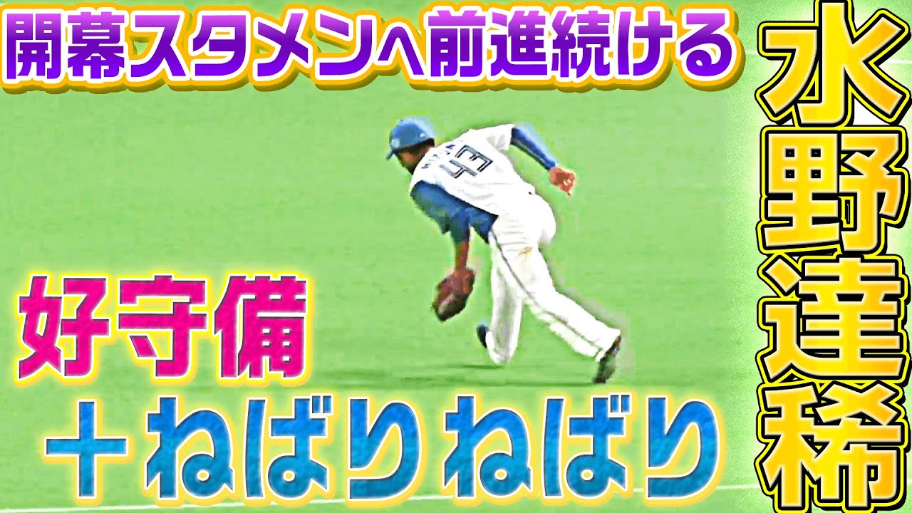 開幕スタメンへ向け攻守に躍動を続けている北海道日本ハムのルーキー水野達稀。今日も安定した好守備に打席では粘って四球をもぎ取った!