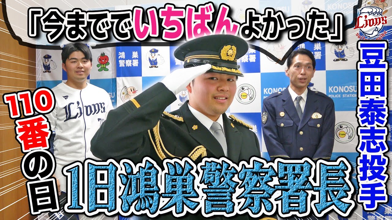 埼玉県出身の #豆田泰志 投手が、1日鴻巣警察署長に就任。