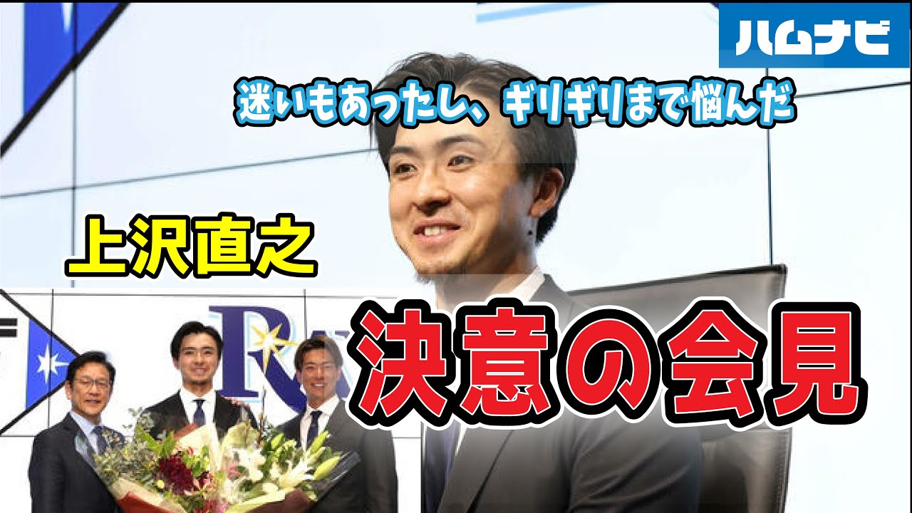 日本ハムからポスティングシステムを利用してレイズとマイナー契約を結んだ上沢直之投手が、北海道・北広島のエスコンフィールドで決意の会見を行った。