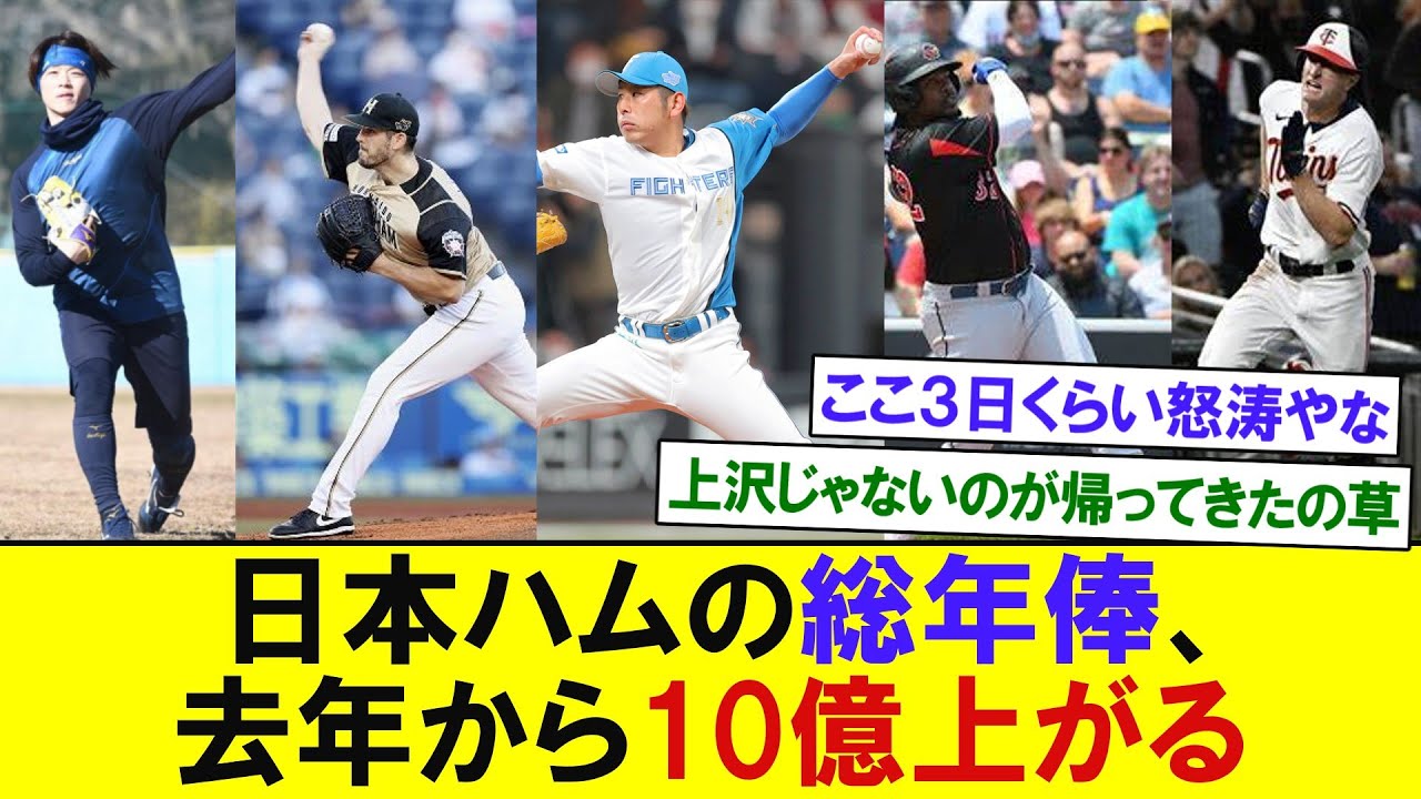 日本ハムの総年法去年から10億 上がる今年の総年方32億3560円去年 の総年方22億 [音楽] [音楽] 疲れるわほんま外国人8人ってすごいな こんだけ取ってくるならやっぱりすは じっくり育てる感じかその方が良さそうや なすぐ出ていかれてもきついしパ色々起き て羨ましいわ世話なんかないんか優勝とは 言わんけど3位になって欲しいって感じの 補強やな実際ここ数年全頭に再建機やって たし勝負かけるにはええタイミングやろな テンダーも結果的にはそんな悪い結果に なってないし西川残しててもあれやった やろうしなはあれやが心情と新球場で ごまかしてただけで4年連続Bクラスとか ファン離れててもおかしくないし今年結果 出せないと相当厳しいやろ [音楽] な
