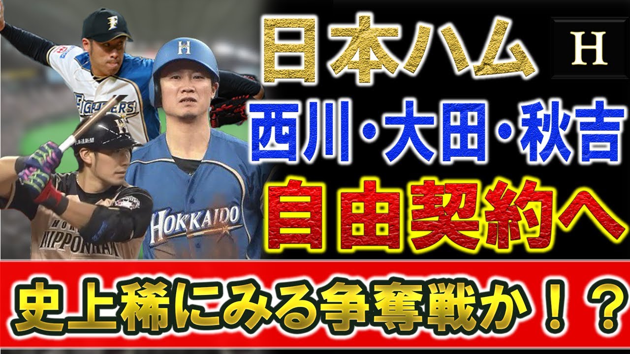 はいプレボ流動も野球人です日本ハム西川 オーター教師自由契約会史上稀に見る争奪 戦かということでございまして日本 ファイターズのですね主力3選手がですね どうやら来季の契約提示を行わずにですね 保留手続きを行わないということが発表さ れましたかなりでびっくりしましたは なかなかやっぱり日本ではこういう動き っていうのはないのでエヴァインパクトは 強いかなっていうふうに思いますまずは 記事から見ていきましょう 2町の主力3選手を自由契約に日本浜16 日海外 fa権を取得している西川が安い 国内 fa権を取得している秋吉投手太田 外野手と協議した結果は来期の契約を提示 せず保留手続きを行わないことを発表した 2010年のドラ2 day に車6入団 した西川中でリードオフマンとしてチーム に包茎2020年オフにポスティングして モーリーをしてメジャー挑戦を志したもの の移籍が成立せずにちゃみーさん流今季 新たに海外 fa権を取得していた 2008年ドラ1で巨人に入団した太田は 16年オフにトレードで日ハムウェイ レギュラーをつかんだもの本脚身により 出場機会を減らしていたと13年ドラフト 3位でヤクルト入団した秋吉は18年オフ にトレードで兄ちゃんmeja 目から クローザを任せるなど救援陣を支えだから 根拠は10試合の登板に終わっていたと いうことでございますニーチャーム ドレスデンいなま gm は球団を通じて コメントを発表 賛成しトライ金庫のプレイ環境について 協議した結果選手が取得した権利を尊重し のんてんだアートすることを選択したと 自由契約ということですね選手にとって 製薬の内情状態で海外を含めた移籍先を 選択できることが重要と考えた結果です 昨年もノンテンダーの村田投手と再契約し た例があるようにファイターズの再契約の 可能性を遣わすものではありませんとした ということでござい はい今ちょっとでわかりにくいかなって いうふうにはお盆ですがとりあえずねま 来季の契約ははーとりあえず結ばない方針 ということでえーまぁ誰も取らなかったら