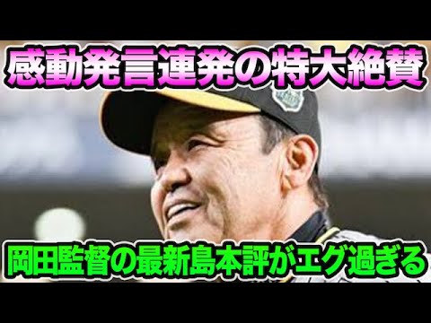 が昨シーズンの島本投手わずか与えたフア ボール3つ予球率は1.01倍以上良く なってますで何がすごいって島本投手 ホームラン1本も打たれてないんですよま そりもう首脳Wiからすればまここぞと いう場面で使うピッチャーホームランだけ はっていう思いはあると思いますからねま それにしっかり答えてもう厳しい場面を何 度も乗り越えてきたそんな島本投手の シーズ振り返り岡田監督は絶賛してました でそんな島本投手の活躍はレギュラー シーズンだけにとまらず日本シリーズでも すごかったというのも岡田監督は昨日24 日公演を行ったんですが日本一に輝いた バファローズとの日本シリーズ真のMVP として島本投手の名前をあげたんですま僕 もこれは正直そう思いますねまというのも 第4戦ま同点の8回1アウトランナー1塁 3塁まずバファローズは代打左のT岡田 選手を起用しましたでそこで岡田監督即座 に島本投手を送り込んだですがここで岡田 監督の中で想定外の出来事が起こったとま というのも試合終了後にもこれは話して ましたが絶対T岡田は買えないと思ったと ですがそのT岡田選手に変えて代打の代打 右の足立選手を投入したんですまこれは 岡田監督の中で想定外でピッチャーは必ず バッター1人投げなければいけませんから ねまわざとフォアボール出して満塁にする 場面ではありませんし左対右ま島本投手 からすれば不利な状況にはなりますがここ でバシッとサードゴロに抑えたま糸原選手 のあの守備もね本当に良かったですけれど もここがシリーズの分岐点になったと岡田 監督は話します日本シリーズの1番の立役 者は島本が足立をサードゴに抑えたこと MVPは島本よ岩の一級って言うけど本当 に1番大事なのは代打の代打を出されると いうこっちの計算外を島本が1番頑張って くれた足立をねそれも32からあそこで 打たれたら勝ち越されてるわけだから岩は 使わないですよま本当は島本がT岡田を 抑えて右の中川のところで言ですよでも その前に代打の代打使ってきたからここで やられたら甲子園で終わってしまうと思っ たそこで島本が抑えてくれたから7戦目 まで行ったし岩も生き返ったんですよねと まさに大絶賛ですいや確かにあの場面は 極限ですよねまもちろんその後に岩投資が 出てきて一級でピンチを凌いでくれたま 岡田監督も岩は雰囲気変えられると思った とまこういう背景というのも話していまし たがその前の島本投手のリリーフここを 岡田監督は分岐点だと考えているま去年の 起用法とかを見てるとも中継人の中でも