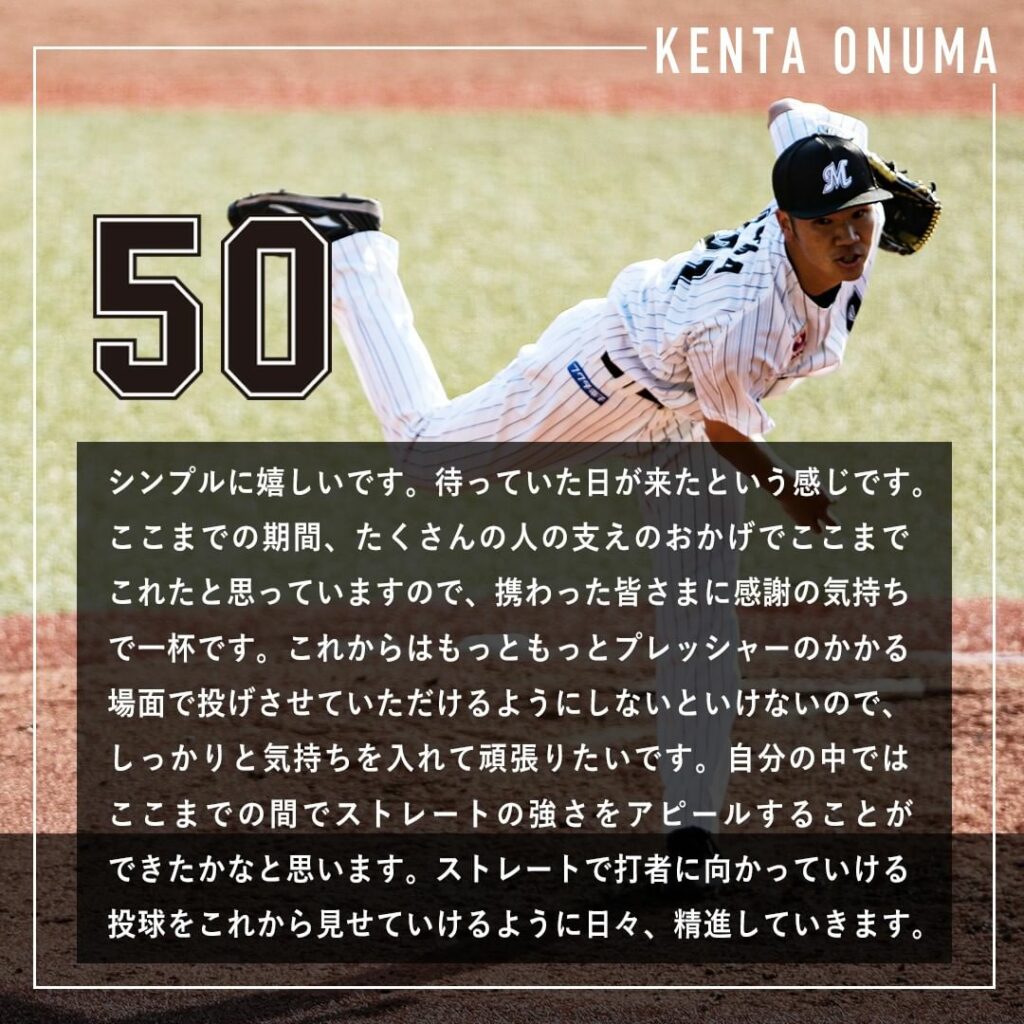 育成の #小沼健太 投手と支配下選手契約を結びましたのでお知らせします。小沼投手の新背番号は「50」です。#chibalotte