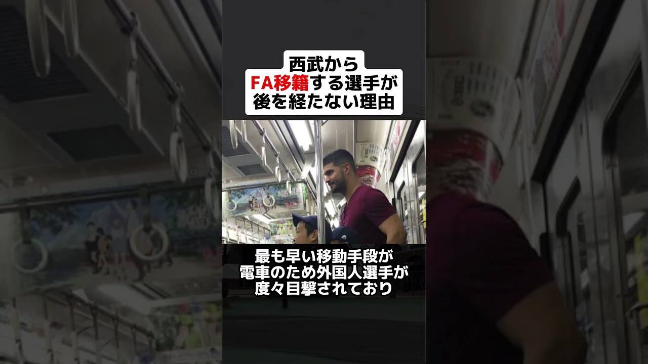 西武のFA留出な日本一おいU山川穂高が FA移籍したりと毎年のように選手が流出 する西武は本拠地の立地が悪すぎることで 選手からアスをつかされているあまりの 通作に石井かずさは通い続けたことが誇り だと語りゴールデンウィークだと車まで3 時間はかかるほどの不便差が流出の理由と 嘆いていた最も早い移動手段が電車のため 外国人選手が度々目撃されておりメヒアに 関してはファンと写真を撮るなどして交流 を楽しんでいたドム球場にも関わらず壁が ないためひどく花粉が待ってしまい田田 新三郎は両方の花にティッシュを詰めて 投球していた逆に屋根があることで熱気が こもりやすくサウナドームと呼ばれ中村 武也は誕生日に熱中症を発し2日間寝込む こととなった空調が効いているドム球場で の遠征が続くと帰ってきた時の深いさから 炎上する投手が後おい室内練習上なのに 水溜まりができるほどの劣悪な練習環境で ソフトバンクの練習施設が映されると西部 の選手が完成を上げていた
