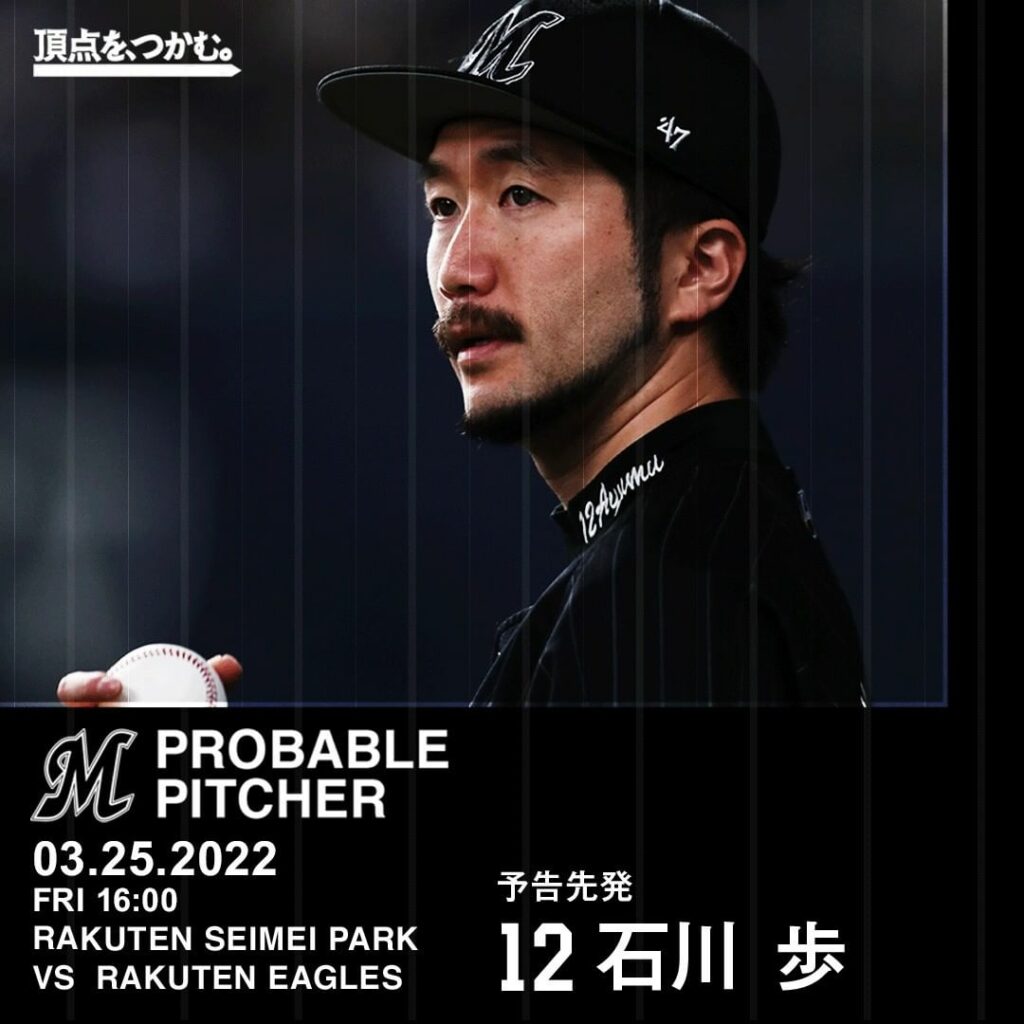 明日3/25(金)のマリーンズ開幕投手は #石川歩 投手です。#chibalotte Chiba Lotte MarinesChiba Lotte Marines Official MediachibalotteNPB Pacific LeagueOfficial Media千葉ロッテマリーンズ石川歩 NPBHUB.COM | The Fanbase of Nippon Baseball & Nippon Professional Baseball