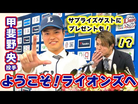 いただいてですね先輩方とかま後輩もそう ですけどま本当寂しいっていう声があった んですけどあの真剣勝負できるのがすごく 楽しみって言ってくださる先輩方も いらっしゃったので本当僕もま確かにそう だなというに思いましてまいつもチームで やった方々が敵になる初めての経験です けどまこれもいい経験になると思いますし あの対戦するからにはあのしっかり抑え いうに思ます対戦したいバッターはまでも 本当に対戦したくないバッターの方が多い んですけどあのでもやるからしっかりはい こもレベルアップしてはい誰が来ても 抑えるようにやりたいな思 ますあの自分の役割が中継ぎということ だったがことなのでま本当にメドでもある 50試合以上の登板は必ずしたいなって いう風に思いますはいえっと ま本当に早くいち早くチームにえ飛び込ん でですね あの えまシーズン優勝日本一本当になりたいと 思ってますしま本当 あの来てくれてよかったという風に思って もらえるように本当にあの自分え商品して いきたいなと思ってますありがとうござい ますそれではこでえライオンズファンのお のメンバーからえカのスポーツにえ ウェルカムメッセージが届いておりますの でそちらお渡ししたいと思いますそういい んです かありがとうござい ますちょっと見てみたねはいいや嬉しい です本当 にこんなのなんか色々あるんですね なんかい球団いや本当にすごいですね 嬉しい ですみんな心待ちにしておりますはい ありがとうございます本にどですいもう 最高じゃないですか本当に本当にあの いいシこれかなはいい全部目に止まるん ですけどまあの はい34で活躍躍動している姿を楽しみに していますという風書いてましたはいな 嬉しいですはいもうそれはもうはいもう常 に思っます はいありがとうございますはいお願いし ます はいはいありがとうございますどうぞあそ すませこちらお願いしますありがとう ございますまあの1台イベント1つはい 終わったなっていう風に思ってます呼ばれ たいえいやもう好きに呼んでくださったら もう僕もはい答えようかなって思ってます けどはいいや結構色色々あましたねカイの