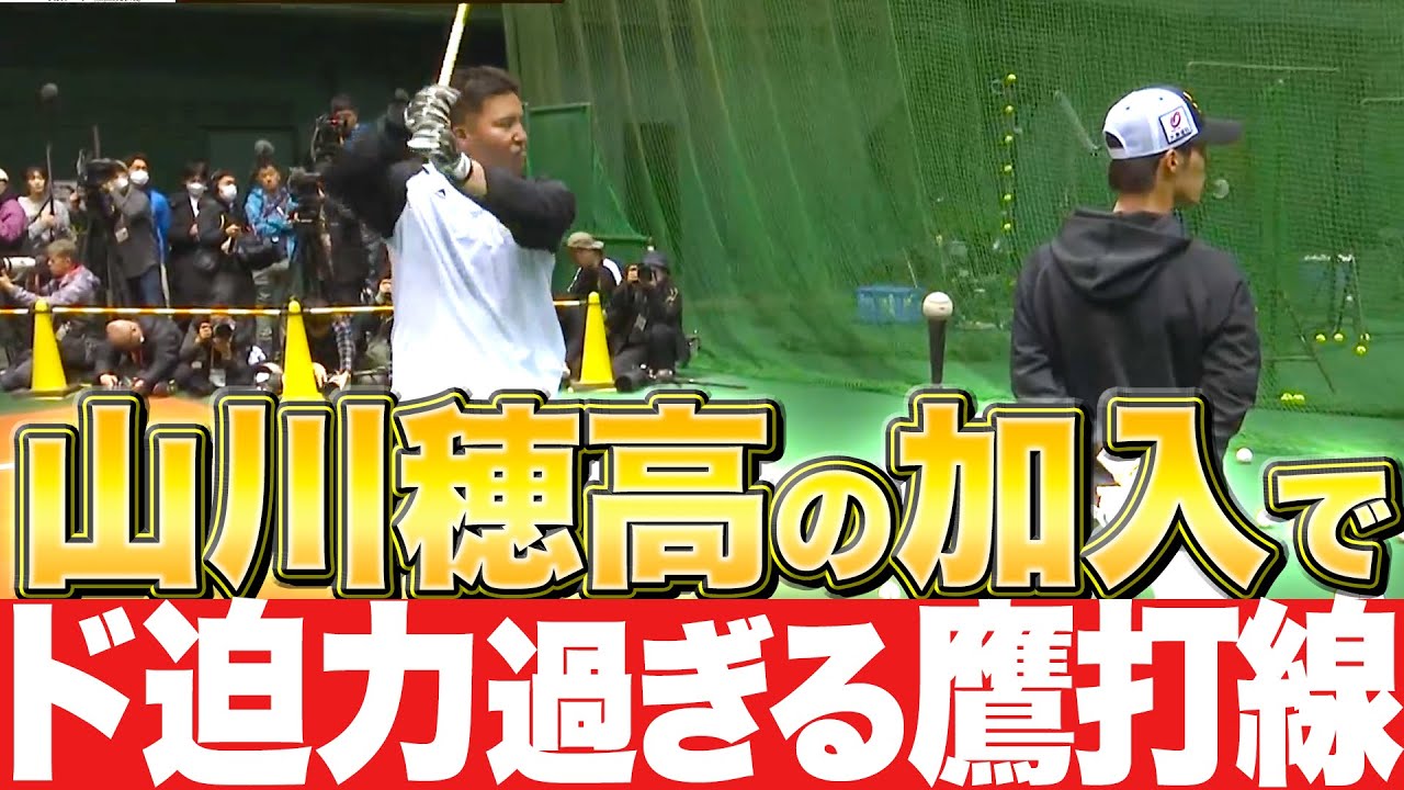 福岡ソフトバンクの春季キャンプ初日は残念ながら雨により室内での練習となったが、昨季大活躍の近藤健介と新加入の山川穂高がならんでトスバッティングを行う。しかし、この、山川、柳田、近藤、ウォーカーが入る打線…ド迫力がすぎる。