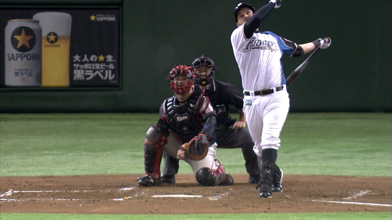 2回、レアードが高めの球をとらえ、打球はバックスクリーンへ。26号ソロホームランで日本ハムが先制した。 (9月3日 日本ハム-ロッテ)