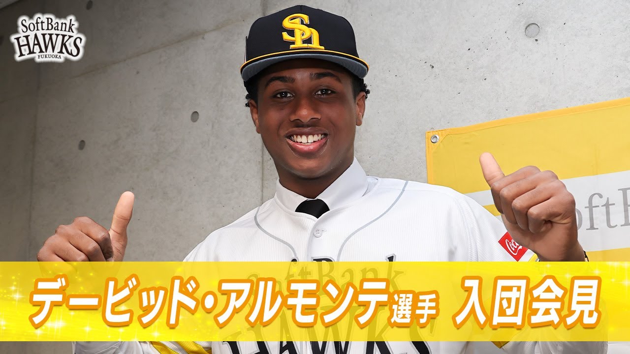 お願いします願お願いしますはいえそれで はお待たせしましたえただいまよりえ アルモンテ選手入団会見を始めさせて いただきますえまず冒頭にえ長井編成育成 本部長の方から今回入団経緯とえ本人期待 することなどお話しいただきますはいえ皆 様ありがとうございますよろしくお願いし ますあの今回えアルモンテ選手入団え いただきましたえま16歳のドミニカ出身 の内野というところでえしっかりホークス でえ育成してですねえ将来はあ主直にえ なってもらえるような選手にえ成長して もらうというところを期待しております またあの4軍制も敷いておりますのでえ しっかりこうホークスの育成環境の中でえ 外国人の戦力も育てていくというところに えチャレンジしたいというところもあり まして今回え獲得した経となっております 以上ですはいでは続きましてえアルモンテ 選手からえ簡単に自己紹介をさせて いただきますよろしくお願いし ます AG AG 上えアルモンテとえ申します16歳で ドミニカ出身のえ内野州主にショートを 守ってるえ守っています えっとま福岡ソフトバンクホークスを選ん だ理由としてま日本の野球というのが すごいえ積極的なプレイであったりとかえ ま小技ももちろんですしそういった部分で すごいレベルが高い野球をしているなと いう印象があるのでえ日本のを選ばして もらったってところもありますしソフト バンクホックスさんにすごい評価をして もらたってところもあってえ今ここにいる ことができてとても幸せに思っていますま 今後もま自分自身のプレイとしてはすごい え積極的な攻撃的なプレイをしてチームに 貢献するというところが持ち味でもあり ますんでまそういうところをしっかり 生かしてそういうところをしっかり アピールしてえチームの主人の方たちにえ 認めていただいて早くその1軍であったり とかえ大きな舞台で活躍できる選手に成長 できるように頑張りたいと思っています よろしくお願いし ますはいえ続きまして質疑応答 ず代表質問を西日本新聞よしお願いします はい早速なんですけど団のになった理由を 教えて [音楽] くださいま1つの理由と してすごい高いレベルでえ教育がされて いるとところもありますし育成のシステム
