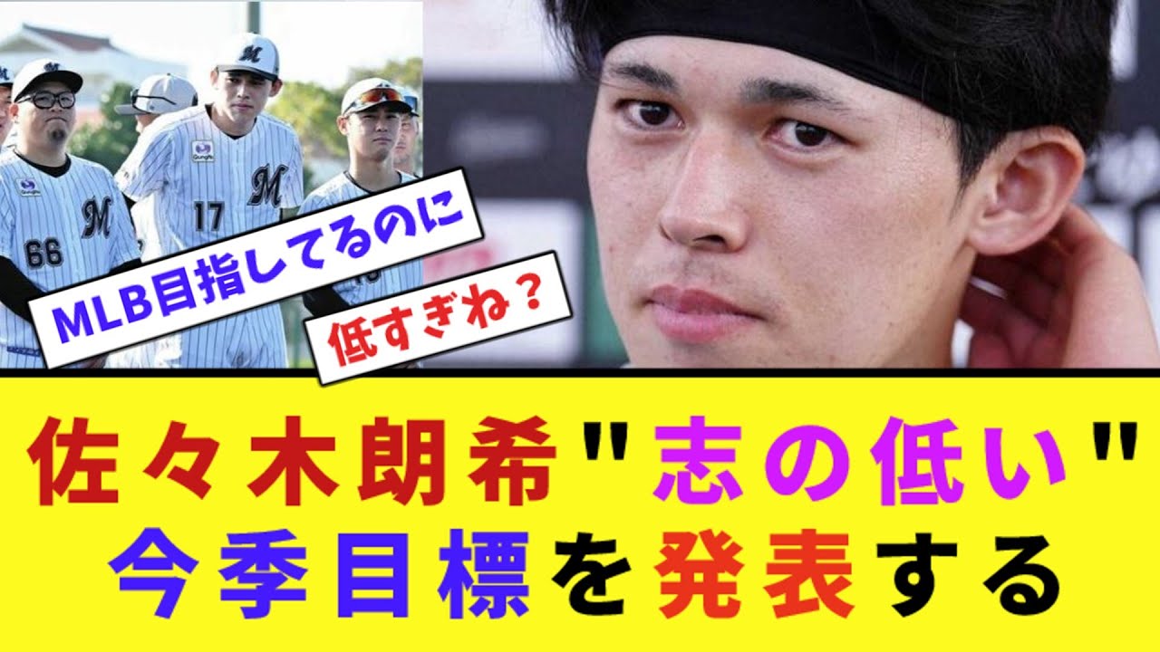 佐々木老樹心志しの低い今期目標を発表 する2月1日石垣市で春期キャンプ初日を 迎えたロッテの佐々木老樹20キャンプで はしっかり体作りをしその中で実践に向け て調整していこうかなと思います自分の ペースでやっていきたいと思っていますと マイペース調整を強調作期は15試合7勝 4杯防御率 [音楽] 1.78mmようにしたいと今期の目標を 掲げたメジャー目指してるなら最低限でも もっと目標は高く設定してくれよ去年一作 年とかじゃなくてまずローテ感想やろ日本 で規定投げれんようなやつはメジャーも いらんだろ年間25登板防御率1点台は ノるだろ22年9勝4杯 129.168.0.1 山本吉信の成績超えるくらい家10勝より 規定投げてくれもし投げられたらおのずと 10勝はついてくるわ沢村賞取ってくれ たら何も文句ないわイコールその年で1番 の先発成績やからな規定さえ乗れば最優秀 防御率と最多脱三振は硬い線画のNPB 歴代最高脱算振率も更新ほぼ確定 とりあえず今年は怪我さえなければ シーズン通して投げるでしょ最低限やから 完全試合1回と2桁勝利は確定やな目標は もっと具体的に出してほしい さよなら日本ラストシーズンヘアバンド逆 なの誰か教えてやれよA会話の教材って 答えたら面白かったのにスローペースの 調整でも手抜きに見られてしまうから今年 は大変だろうな最低限は離脱なしやろご 視聴ありがとうございましたチャンネル 登録お願いします
