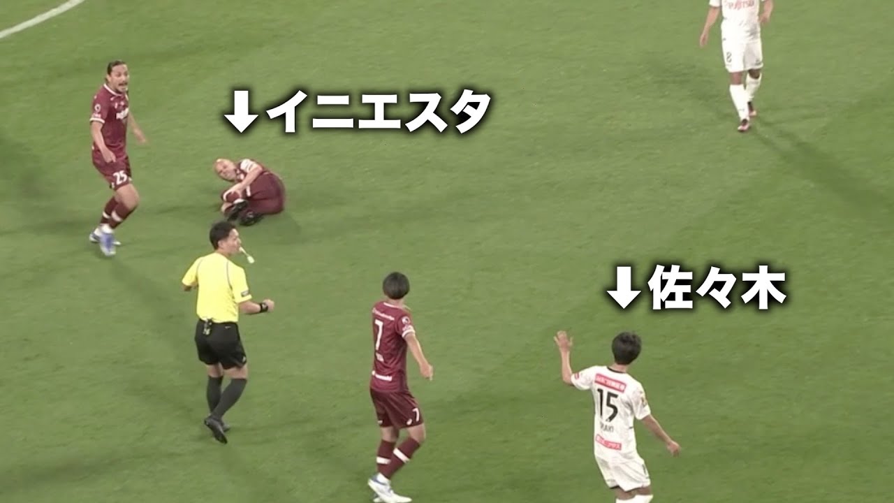倒れてるイニエスタにボールぶち当てる佐々木旭