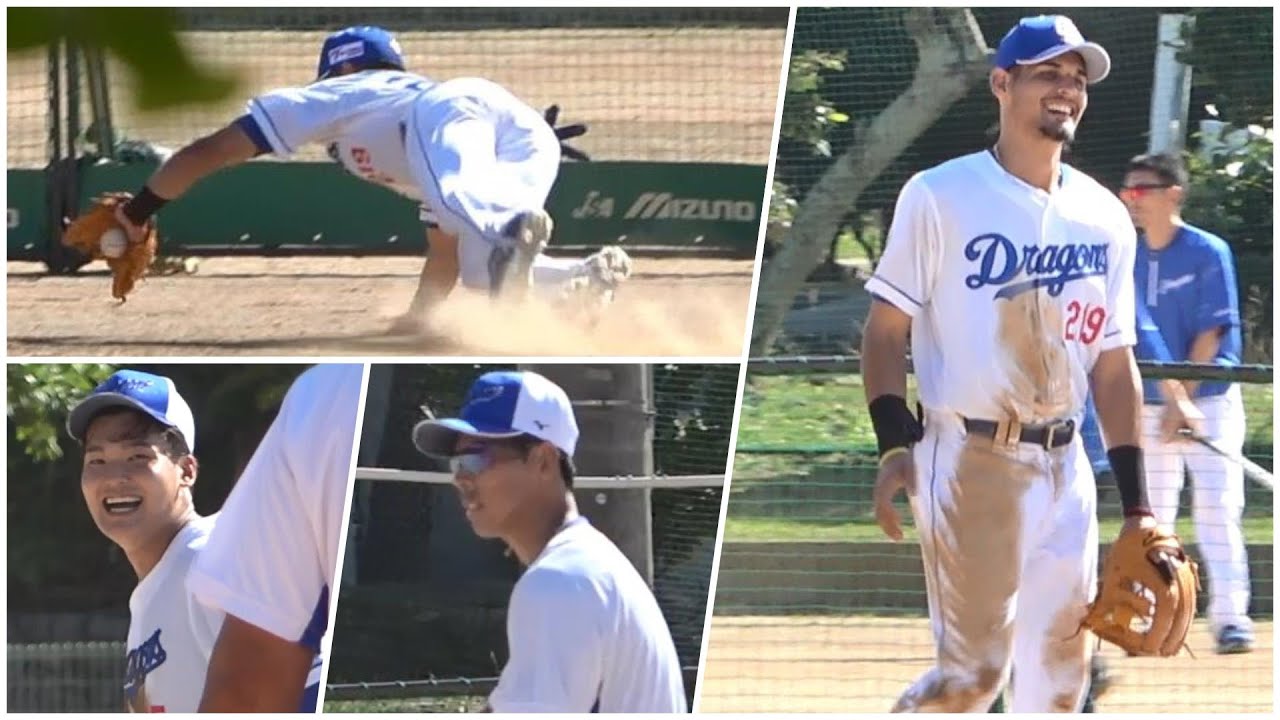石川昂弥・樋口・ロドリゲス、計33本連続ノーエラーで終了のノック。途中ロドリゲスのスーパープレーも飛び出てついに成功!(2024年2月2日)