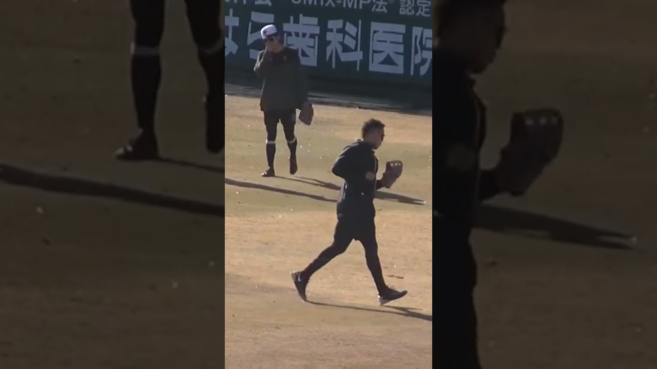 育成合同自主トレ外野でノックをうけるウレーニャ〜ジャイアンツ球場2024年1月14日
