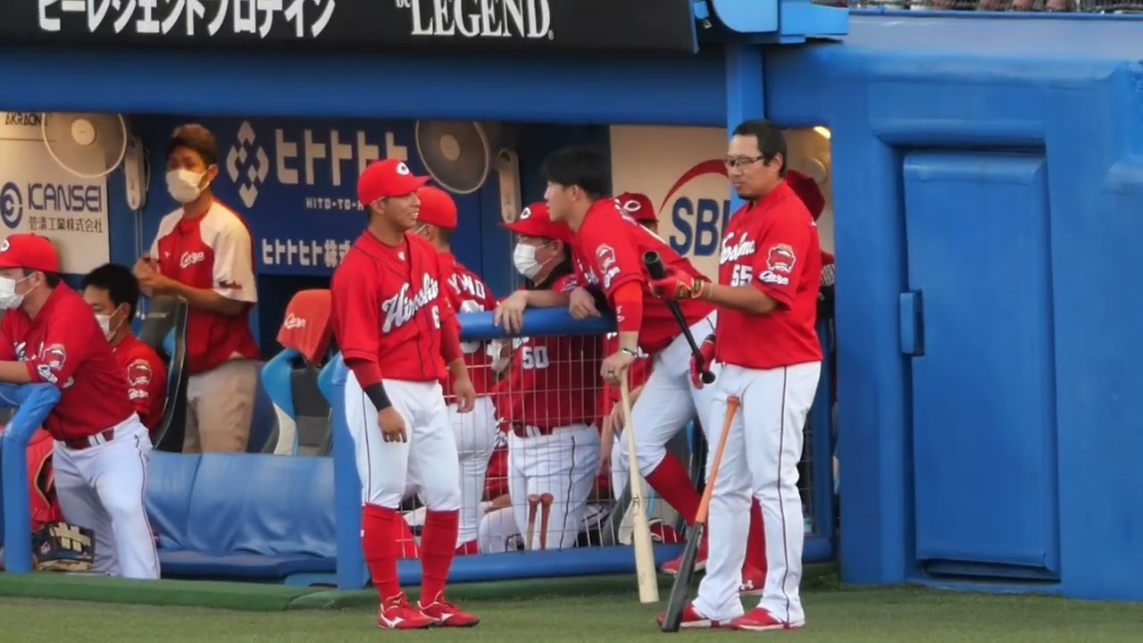 羽月のバットをチェック!スタメンにご機嫌そうな松山竜平|広島東洋カープ|2022年7月24日