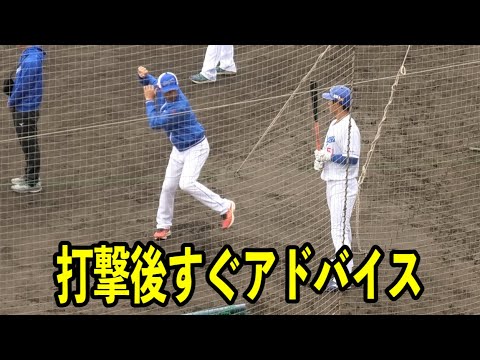 上林誠知選手のシート打撃後すぐにアドバイスする和田一浩コーチ!2024/02/08