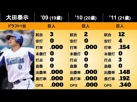 大田泰示選手の年度別個人成績をまとめました。(2022年終了時点)