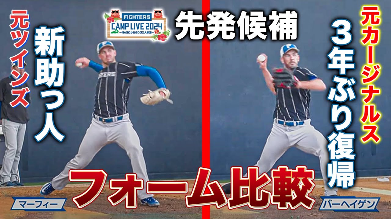使ってなんかちょっと古い表現かもしれ ないですけど神経使って投げてるんで コントロールでなんか苦労はしなさそうだ なっていうねピッチャー2人ですよねうん あのなんちゅう の行き当たりばたりで大ざっぱに投げて ないですもんねそうですねもう力任せに 大体投げてるピッチャーじゃないなと思い ますねこの辺りからモビ一旦あマーフィ 投手の方がこう胸をぐっと張るような感じ でも見えますけど ねま身のこなしで投げるピッチャーです身 のこなしでねうん2人とも190超えてる 身長がありますけどなんか自分の体 しっかり操れてるなと印象あります ねえこれ2人先発やんの鶴川さんえまでも 今はい外国人ものすごく多いじゃないです かうんで登録4人で同時出場3人なんで ここら辺はしっかりとこうねチームもしか したらこの2人は登録登板真勝登録登板 真勝になるかもよね2個1でこれに ロドリゲスがいてほんまやはそうですね あと野手のね外国人の兼ね合いもねあり ますもんねはいうんさあどうなるん でしょうかファイターズキャンプライブ タピックスタジアム名子から生中継でお 送りしていますはははは [音楽] [拍手] [拍手] は [拍手] お [拍手] ます
