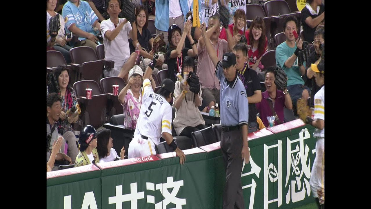 一つのアウトも逃さない!スタンドに飛び込むかと思われたファウルボールも、最後まで喰らいつき、松田宣浩がガッツあるプレーでアウトをもぎ取った。(2011年7月31日 福岡ソフトバンクホークス対北海道日本ハムファイターズ) 0731201107312011年7月31日Fukuoka SoftBank Hawksパ・リーグパシフィックリーグファイターズホークスヤフードーム北海道好プレーソフトバンク日ハム日本ハム松田宣浩福岡福岡ソフトバンクホークス NPBHUB.COM | The Fanbase of Nippon Baseball & Nippon Professional Baseball