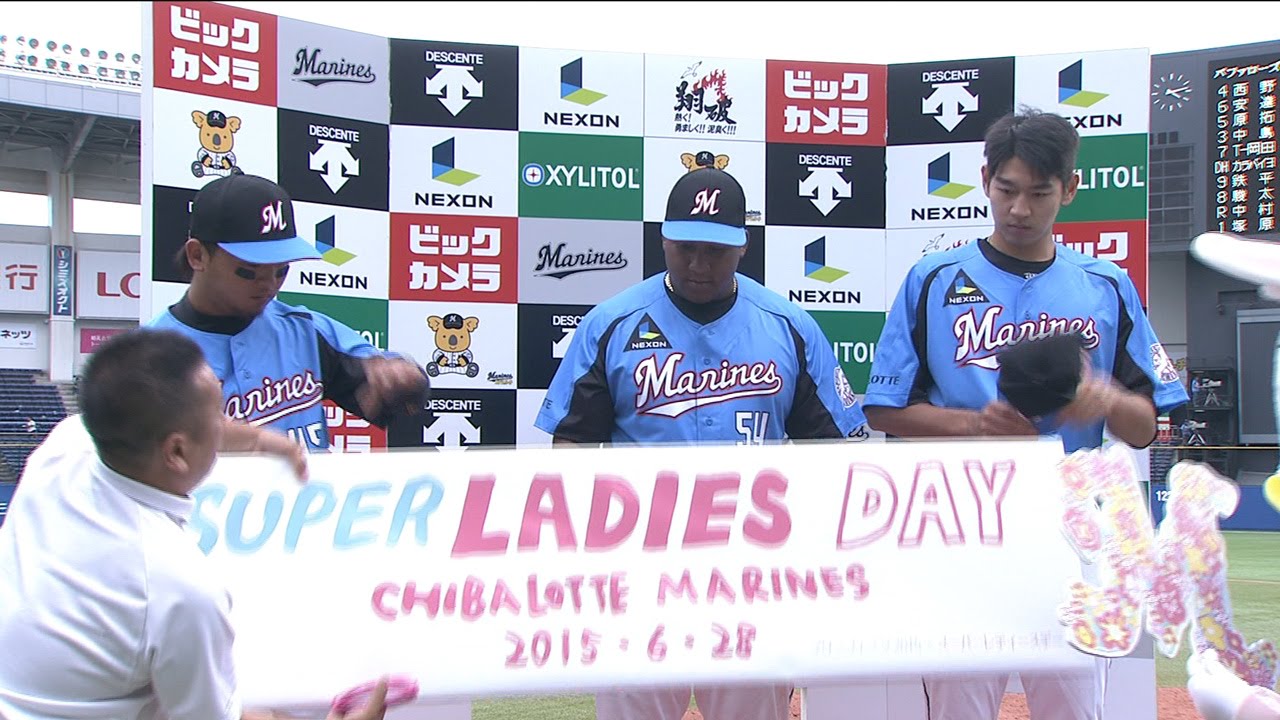 はいはいそれではファンの皆様お待たせし ました3人の選手の方々登場でございます えまず 最初セットアップとしてこのところ貴重な 働きをしていますウ投手 ですさんども大事なところで見事 に相手を止めましたね大谷大峰投の後を 受け てっ たか すその場面で抑えられ てもついて本にかった ですあのレディということで女性ファンも たくさんお見えになってるんです がその声はしっかりと耳に届きました かあいつも聞こえてい ますそんなレディーの中でイデウン投手は イケメン5に選ばれてるんです が もうちょっとあの順位が上の方が良かった んですが5位で嬉しいですありがとうごい ます5位でしたからねそうですかさ アメリカでもそうですが韓国でもやっぱり さん女性に持てるんです か ボルゲちょっとその辺はよくわからない ですちょっと照れてます ね すいませんわかりませんえこれからもあの マリンと女性ファンのために素晴らしい 活躍最後女性にあのメッセージお願いし ますいつもています はいありがとうございましたさそして続い てはバッターデパ手 ですさん今日あのマリンフェスタやっぱり お祭りは盛り上ります か 勝利言わてっ た 手てまし たね今日の勝利は全ての女性に捧げたい ですこのまま本当に応援していきたいなと 思います昨日はホームランサンアンダー そして今日もタイムリー マ そうですね自分的には調子もいいですし チームも勝ってますしこのままどんどん 順位を上げていきたいなと思いますはい これからとデイ選手の存在大きいです よですチムに大事な存在なので自分でも できること100%毎日力を発揮してこれ からも本当にみんなのために頑張っていき たいなと思いますはいありがとうござい ますさあ続いて田村星にお話を伺い ましょう田村さん今日は決勝のファーブル