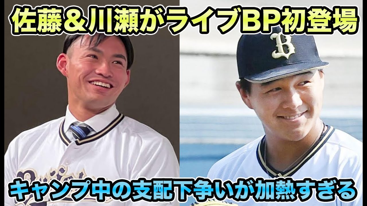 さあオリックスですけれども今回の内容は 第1クール最新状況ということでござい まして昨日ですねマチャドとそして トーマスがまこう会見を開いてえ阪神の ノイジーとねトーマスがこうすごく仲が 良かったりとかですねライバル関係にあっ たみたいなえ話をしておりましたけれども ま残るはねえ新加入で言うとカスティだっ たりとかま既存で言うとマーゴラがま合流 するかどうかっていうところになるんです が今回はですね第1クール最新状況という テーマでございますま改めて育成組が ライブBPま実践型の打撃投手にえこう初 登場というところでえどういった投機をし たのかっていうところねえサムネにも書い てますが支配化争いがちょっと過激になっ たんじゃないかっていうところでそこの 部分を中心にあとはですねえ最新状況個人 的にね感じた部分だったりとか細かな ところでもねもしかしたらこの選手がここ にちょっと初めて挑戦するんじゃないかと かま色々と情報が出てきましたので改めて その辺りもねまとめながらお話をして いこうかなという風に思いますでまずです ですね今日のですね2月の7日のねま練習 風景というところでオリックスのホーム ページに記載がされてますから見たところ ですねやっぱりこうノックだったりとか この選手はこのポジションでノック受け てるよみたいなのがま公開されてるんです よねでこれまず見て欲しいのがえラオが ですねライトに行ってるんですねで去年 までだとですねまレフトを守っていて正隆 がね2年前まではいたのでライトを主戦上 にしてたんですけどまレフトが開いたって いうところでねラオをレフトにえしてまし たが今年改めてこうしは両馬選手がえ加を するというところで言うとレフトに両馬 ライトにイラをセンターにケタっていう 最強のこう外野人を形成できるっていう ところでねえケタのちょっと負担がえ ちょっとこやっぱ増えたりとかえもします し西川龍馬選手はね結構やっぱりこう型が そんなに強くないっていうところでえで 一方ラオに関してはね肩はまあまあなん ですがクッション処理がちょっと苦手でで ケタに関しても守備範囲はねまこうそれ なりにできるんですけど肩がそんなに強く ないっていうところで結構こうファイアー な夫人なんですがそういったものも組める のかなとまてっきりねレフトっていう ところを両馬とラオでまこうえ怪我だっ たりとか離脱とかねDHとかも兼ね合いで 2人でこう1つポジションっていうな イメージでもこう埋めてですねライトを