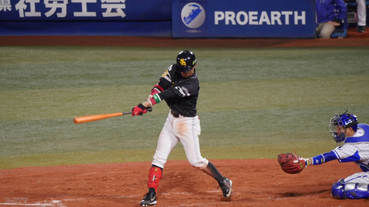 福岡ソフトバンクホークス 明石健志 バッティングフォーム&バッティング(スローモーション)【センター前ヒット】