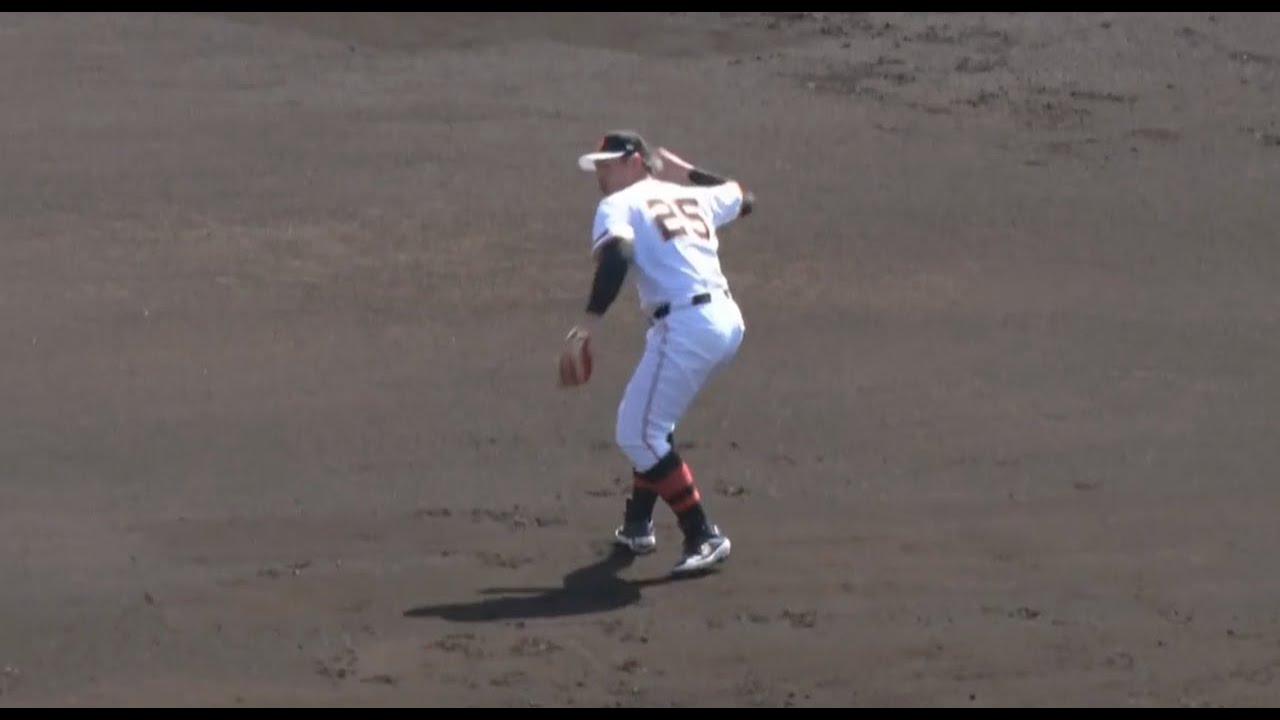 もう会場からこの球場から白身が起こって ましたねうんそうですねあの非常にまもう プロのね一流の選手たちが守ってるんで 非常にこう簡単そうには見えますけども ただやっぱり土のグラウンドでやっぱり ノックを受けるとなるとやっぱり イレギュラーも当然ありますしやっぱり こう打球えの質も変わったりしますんでね もう非常にこうやって映像だけ見てると 簡単そうに取りますけど非常にもうあの芝 から土に打球が変入るのでそうするともう 打球も回転もやっぱ変わってくるんですよ ねはいだ僕らもあのキャンプ始まって東内 連携塔でえメインでノックするんですけど もまあの僕らじゃこんな簡単に取れない ですからあそうですはいもうイレギュラー するともうボール対応できないですしえ ただやっぱりその辺はやっぱこう簡単にね 処理できるっていうところがまさすがだな と思ってやっぱり見てますけどね [音楽] ええ門脇も背番号が5番に変わりまし て非常に一桁の背番号は責任が重いですね ということも話していました が門脇選手もね昨年はルーキーですからね そうなんですよはいもう今年2年目でね このメンバーと一緒にノックを受けてはい まあこのスタメン開幕スタメンのね メンバーがメンバーの中に入って るっていうところはすごい成長ですよね そうですよねはいこれは川井コーチが話し ていましたがま昨シーズンも春期キャンプ 宮崎沖縄で行われましたが宮崎の時には まだま当然すかった やっぱりが多くなるに行ってあこれは やれる選手かもしれないってことが沖縄に 行って分かってた分かったということも 言ってましたねまそうですね あのま当然沖縄に行って試合をこなして いく中であのま安倍監督も言ってました けどもピッチャーで言えばブルペンで非常 にいいボールを投げるけれど [音楽] も あ