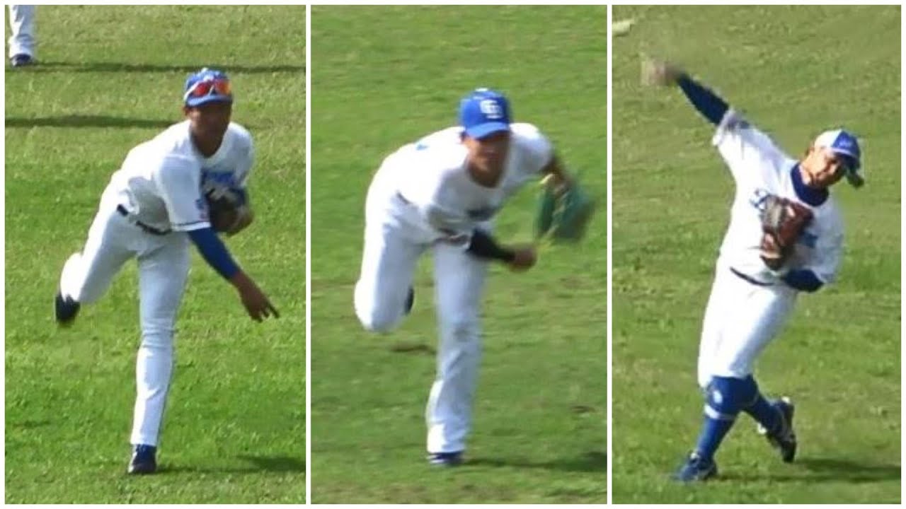 後藤駿太のレーザービームにどよめく観客!中日読谷組の強肩トリオ 濱・後藤・加藤翔平がシートノックで強肩を披露!(2024年2月6日)