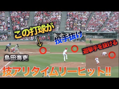 島田海吏選手がピッチャー遠藤淳志投手を抜けショート小園海斗選手を抜けていく技アリタイムリーヒットで貴重な追加点を挙げます!!