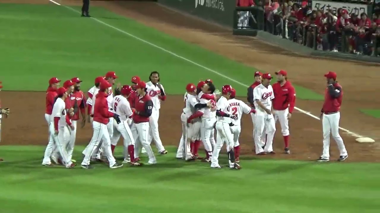 2018年4月19日。広島対ヤクルト 4対4の延長12回裏、下水流のサヨナラヒット。
