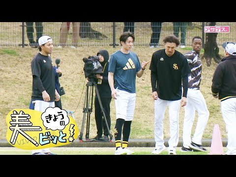 この日多目的グラウンドで行われていたの はホークスキャンプ恒例地獄の400m そう国保監督もこの美しい笑顔で見守るな 75秒以内でのゴールを目指しますしかし これが響き耐えている選手でさえゴール 直後はの表情を浮かありのきさににをつい たり 倒れ込んでしまう選手もいる ほど日本一奪を目指すトレーニングは とにかくしんどいん です続いては見ト佐藤直樹選手のスピード 自慢が揃った瞬息対決ということでここ からは実況の西田高さんお願いし ますさあ一斉にスタート決めたのは13番 軍の2番手23番トスピード王狩は138 番ハガレ佐藤ディレクターから者さん競馬 実況風にお願いしますと言われたがこんな 難しいことはないさあこのままゴールする のかいやそうはさせまと徐々に徐々に第3 コーナーあたりからシュートスピードを軍 の見をまくったまくったなんと爽やかな 笑顔でまくったこれは軍のプライ さこのまゴールするのかおっとガ佐藤は ガガから外れたガ佐藤頑張れ佐藤みんな 応援してるぞ入ってきたハサ入ってきた しかししかし世界の打点さすがさすが シュートフ ゴールいや素晴らしい走りを見せてくれた 3人の選手さすがの瞬息を見せつけたト 選手