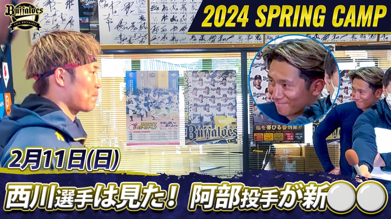 過去最高2万9196人が来場したオリックス春季キャンプ第3クール2日目。ガッツの愛称で親しまれる阿部翔太投手のキャッチフレーズと言えば「ガッツしか勝たん!」何やら今年から新フレーズが登場した様子。そこで阿部投手にお願いして、特別に披露してもらいました。その様子を見守るのは広島から移籍してきた西川龍馬選手。2人は本拠地京セラドームのある大阪市大正区出身のご近所さんで、リトルシニアではチームメイトでした。西川選手の前で飛び出した新フレーズとは⁉︎