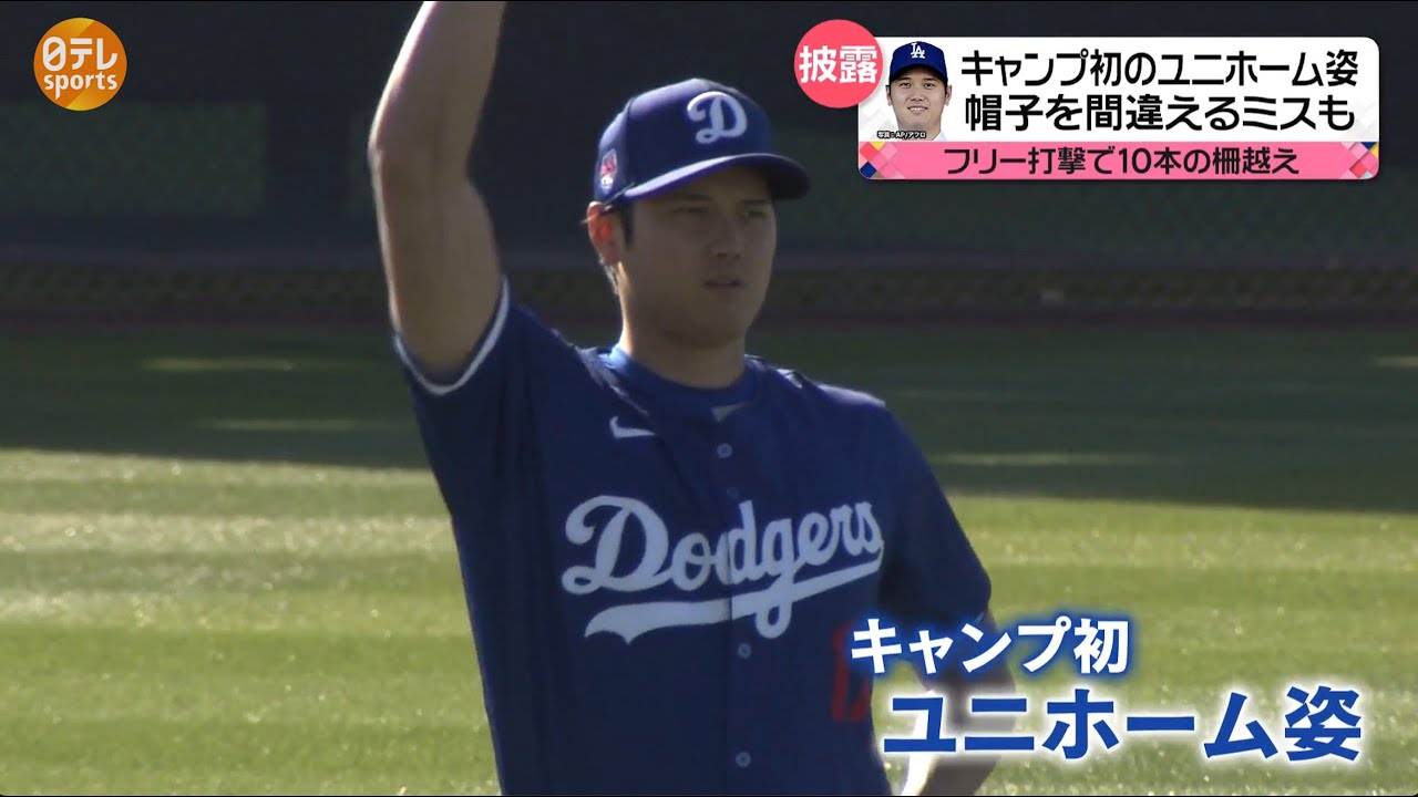 アメリカアリゾナ州で行われている ドジャース キャンプ6日目となったこの日も点に恵ま れる中大谷翔平選手がキャンプ初となる ドジャーブルーのユニフォーム姿を披露し まし たこれまでの半袖で短姿から一見真し ユニフォームで練習に望んだ大谷選手 そんな中 ある序盤の大谷選手LAとデザインされた 帽を着用していますが隣のヘルナンデス 選手にはDとデザインされた 帽子実はこのキャンプではDの帽子を着用 するところ間違えてLAの帽子をかぶって いたん ですその後帽子を変える と大谷選手が出てきました大谷選手が出て きました キャンプイン2回目のフリーバッティング を行い ますバットを持ちフリーバッティング へファンからは大きな完成が上がり ますロバーツ監督や山本吉信ら チームメートも見守る中行われたフリー バッティング [音楽] なんと5本連続で作を 拾う選手の外ではボールを追いかける ファン も大谷手は急スイング中10本の錯を放ち 順調な調整ぶりを見せまし たその他の日本選手も続々キャンプ インメジャー初のキャンプインを迎えた カブスの今永翔太投手も新天地の ユニフォーム姿を 披露初日から早速ブルペン入りしメジャー 1年目のスタートを切りまし たロダキャンプイを迎えたメ画大投手には 新たなチームメート がチームは藤浪慎太郎投手と1年契約した ことを正式に発表しました現地メディアに よると年方は5億円超え背番号は阪神時代 と同じ19に決まりまし たこれで今シーズン複数の日本選手が所属 する球団は4チームに日本12人中9人が ナナルリーグに 今シーズンは多くの日本選手対決に期待が 高まり [音楽] ます