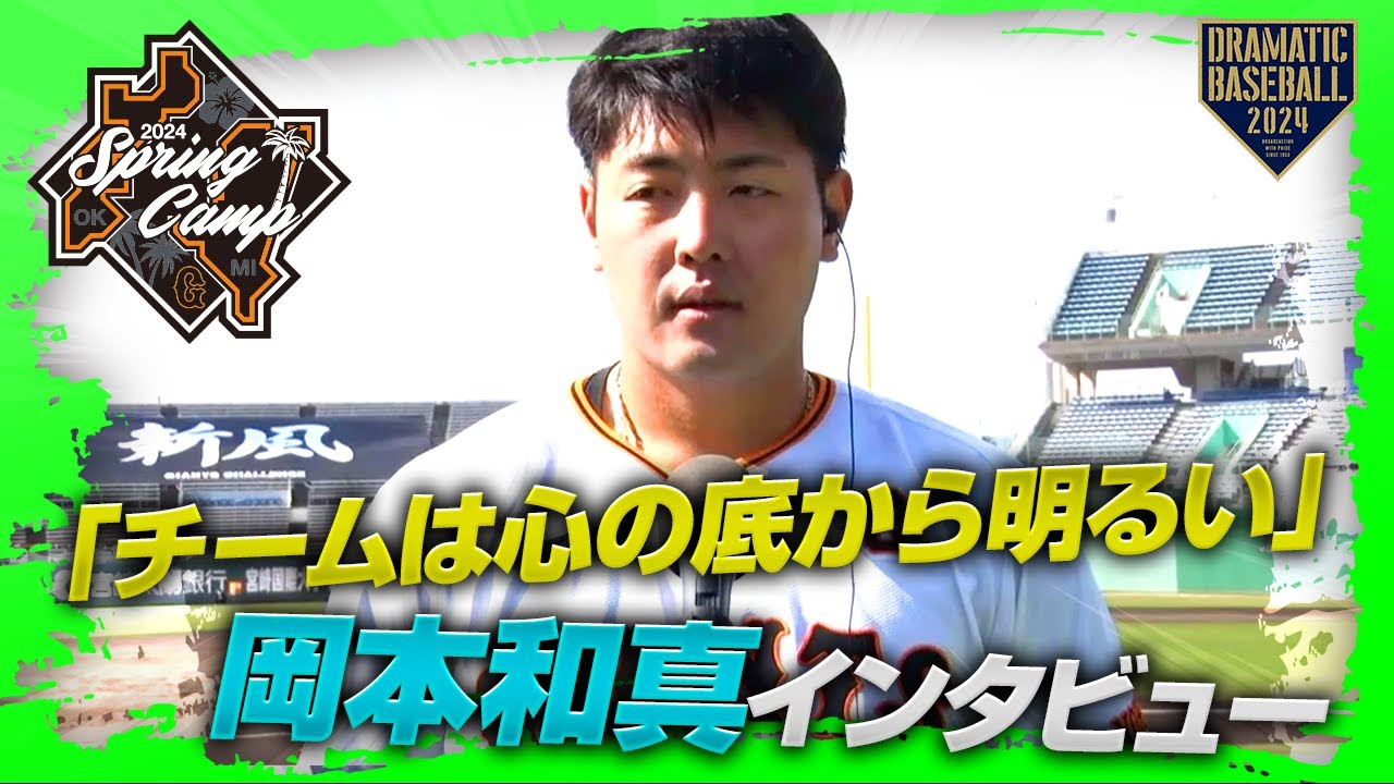 気持ちになったんじゃないかなと思ったの でえその辺の姿勢が素晴らしいなと思い ましたあありがとうございますあとは やっぱ今年のチームの今の雰囲気っていう のはどんな感じですかそうですねやっぱり こうなんて言うんですかね え心の底から明るいというかはいあの無理 してない あの自然な明るさだと思いますあ本当です かまこの後ま沖縄の方に行かれるんです けどもやっぱりお番としてえ1年間結果を 出し続けていただきたいと思いますんで 是非怪我だけには気をつけて頑張って くださいはいありがとうございます ありがとうございます最後に岡選手 ジャイアンツファンにメッセージお願いし ますはいえ本当にまだ始まったばっかりで 僕たちもまだまだこれから えシーズンに向けて仕上げていくのでえ また応援よろしくお願いしますありがとう ございましたこれからもキャンプ頑張って くださいありがとうございましたあり [音楽] ござ