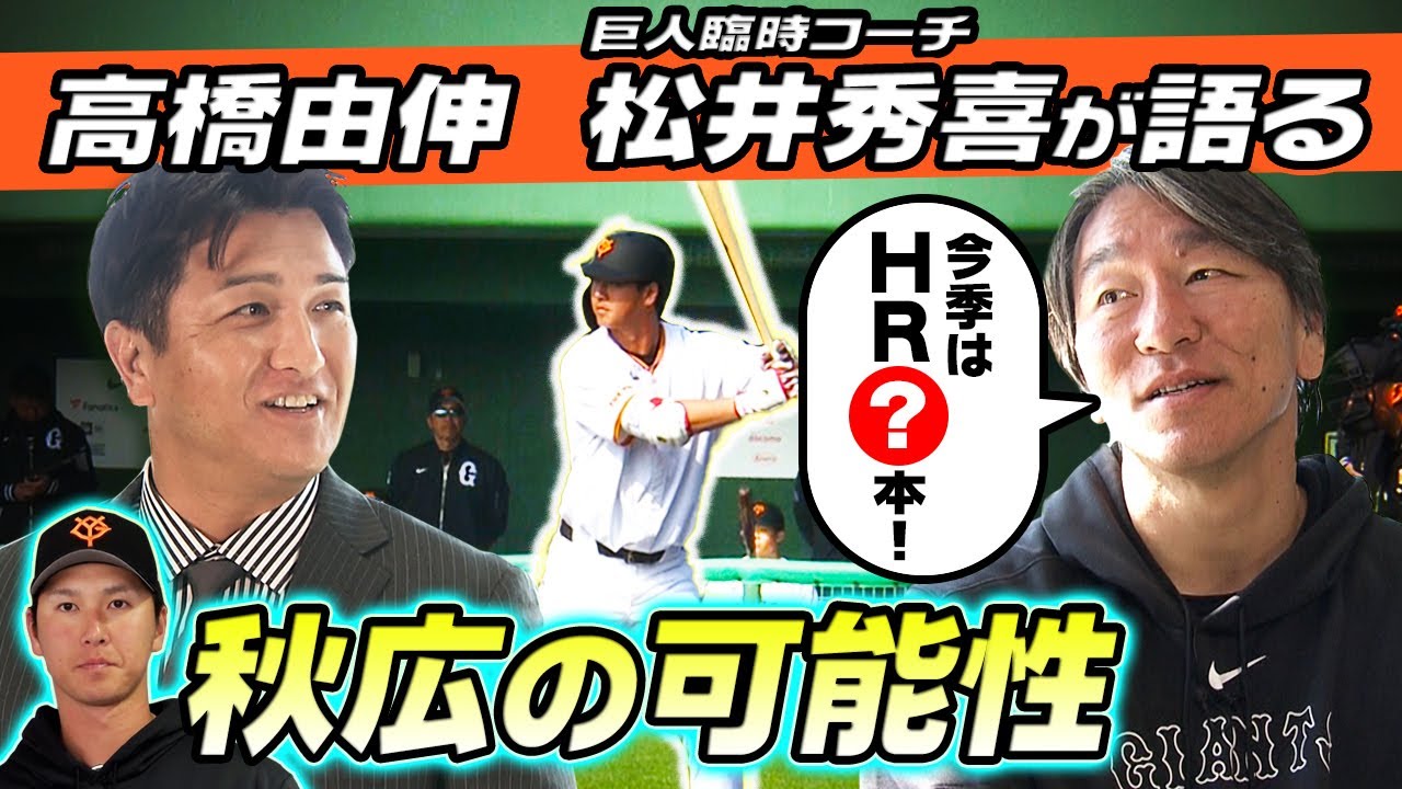 巨人の春季キャンプで臨時コーチとして参加している松井秀喜さんに高橋由伸さんがインタビュー。松井さんがつけていた背番号「55」を継承した秋広優人選手の課題&可能性について聞きました。