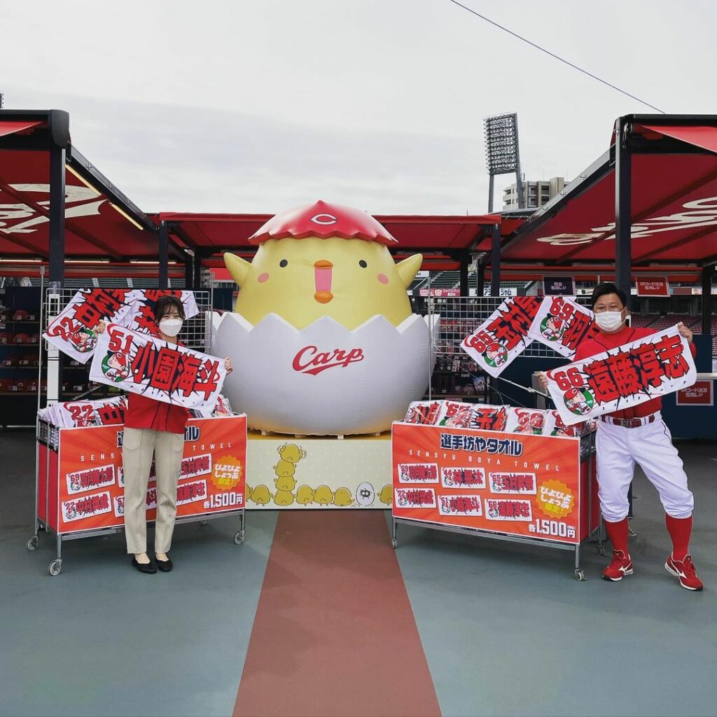“若鯉たちを応援”するぴよぴよ しょっぷでは若鯉たちの「選手坊やフェイスタオル」を販売いたします!!