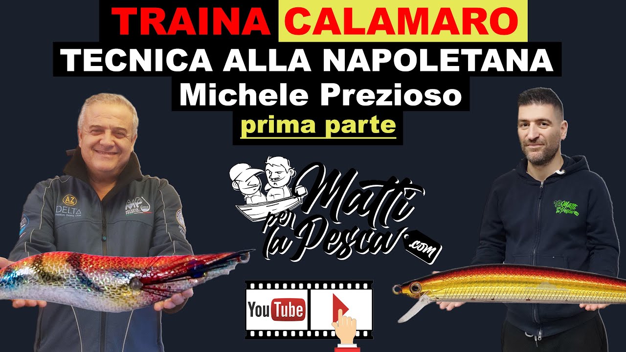 In questo video, “prima parte della tecnica”, vedremo n intervista molto speciale, dove Fabrizio Schirru di mattiperlapesca.com, mette a nudo, grazie alla risposte di Michele Prezioso, la famosissima tecnica di traina al calamaro dalla barca “alla napoletana”. Tutti i terminali per la pesca diurna e notturna, spiegati in ogni minimo dettaglio. Le velocità e le tecniche di guida dell’imbarcazione per poter utilizzare la tecnica. E tante altre nozioni importanti per utilizzare la tecnica, Un video da guardare tutto, dove ogni parola è un consiglio o una spiegazione.