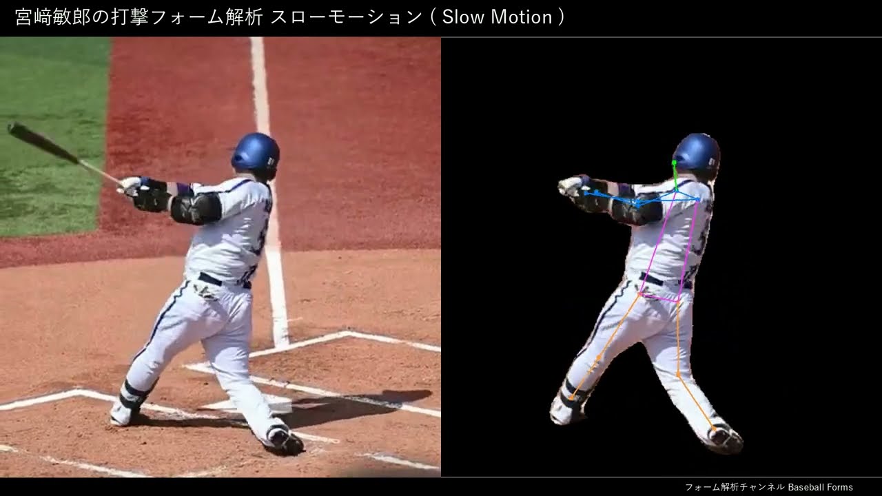 宮﨑敏郎の打撃フォーム解析 スローモーション 2023年 【横背面から】