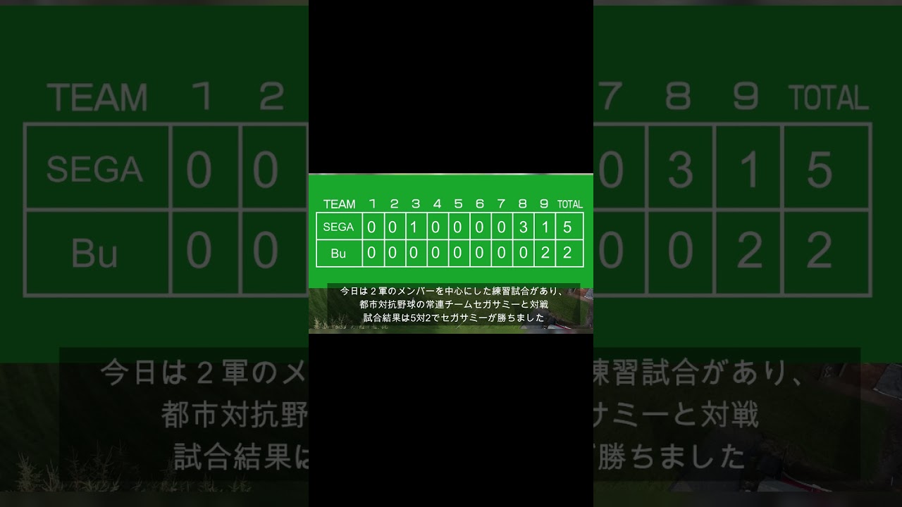 今日は2軍のメンバーを中心にした練習 試合があり都市対抗野球の常連チーム セガサミーと 対戦試合結果は5対2でセガサミーが勝ち ましたそれでは今日の気になった選手を 野手と投手を1人ずつ紹介します1人目は ンネル1本目でも紹介した期待の選手今日 は6回から4番手でマウンドに上がり2 イニング打者7人をヒだ1脱三振3個無 失点だった力強いストレートでストライク を稼ぎ変化球で仕留めるといった内容で カーブチェンジアップを駆使して見事な 投球を見せ た