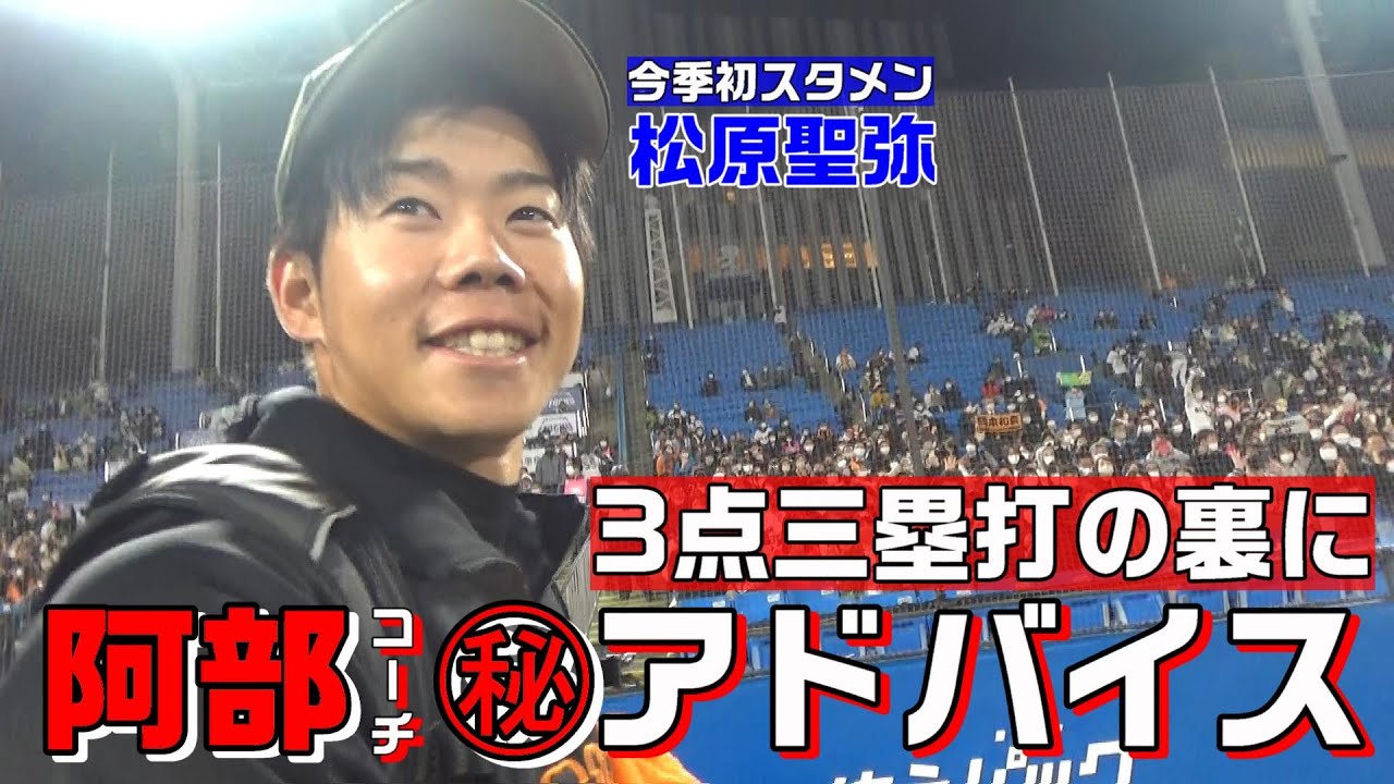 今季初スタメンの松原聖弥選手!3点三塁打の活躍の裏に、阿部慎之助コーチのマル秘アドバイス!?