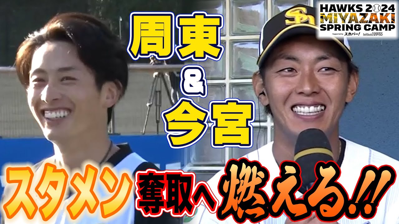 していきながらはいやってほしいなとま 調整できる立場じゃないんでまいやいや いやいやもうもうガンガン飛ばして ガンガン行くはい行かないといけない ところなんでうん行きたいなとは思って ます今宮さんお疲れ様ですはいお疲れ様 です今宮さん今年ですねあの全試合出場と いうのまず1つの目標に掲げてらっしゃる と思うんですけれどもそのためにですね こういうとこ本当に強化していきたいと いうのは今年どういうところなんですかね そうすねま強化っていうところはあんまり 思ってなくてえ昨年ま2年前からずっと やってるあの松田トレーニングっていうの をはい年間てやり続けていくと怪我なく やれたのがま昨年だったんでま昨年 ちょっとやっぱコロナもありインフルも ありい体調不良の面であのアウトして しまったんで今年はそこがなくやっていき たいなと思いますはいなるほどまこれ2年 連続で規定にも乗ってますもんねそうです ね一応はですねはいまでも柳田さんであっ たりとかその先輩たちが全車で出てるんで やっぱああいう姿を見ると出たいなという のはやっぱ思ってますはいうんあの やっぱりこう周りはこの低位争いっていう んですかねこうやっぱり報道とかも結構 煽ってくるじゃないですかそういった意味 で若い選手ま川瀬選手を筆頭にしてま だいぶね去年も実績出したと思いますが その辺りのこうライバル関係っていうのは 実際どんな風に感じてらっしゃいますかえ やっぱりそういう競争世界なのでえま特に 同じレベルであれば若い選手が出るのは やっぱり当然だと思ってますではいえま僕 も若い頃はあそうやってそのポジションを 狙ってえ一生懸命やってきてやってきた中 でポジション取れたっていうのはあります んでえまそこは逆にね渡さないようにあの 必死こいてやるでかなと思いますうんあの 体制変わられましたけれどもあの国防監督 体制になってこうチームの雰囲気とかって いうのはこう変化とはあったりするんです かいやあのますごくういい雰囲気でえやれ てることはもう間違いないと思いますし はいあの色々なま決まり事ではないです けどまそういうルールもある中で えええみんながみ意識してやる中であの 非常にいい方向に向いていくんじゃないか なと思ってますうんあのこの数年間ま ソフトバンクホークスチームとしてです けども本当に悔しい最後の終わり方という 感じがするんですがチームの中心としてえ こういうところがもしかしたら足りなかっ てああいう結果になったんじゃないか今年