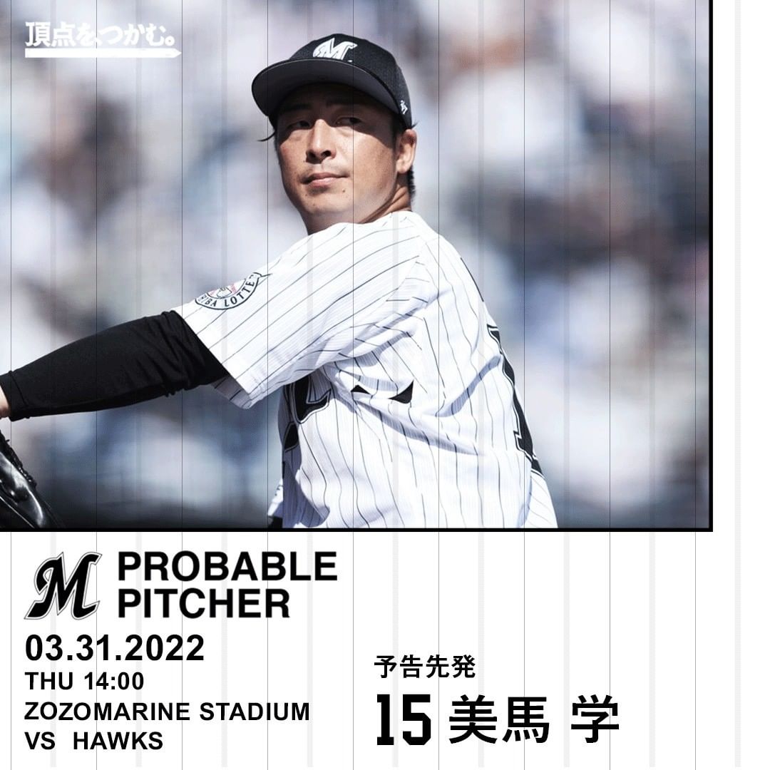 Chiba-Lotte-Marines: 03.31.2022 予告先発:#美馬学 投手 #chibalotte #MarinesNation…