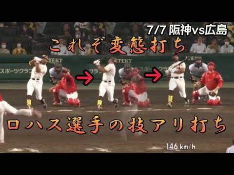 これぞ芸術的な打法、ロハス選手の技アリ安打をご覧下さい