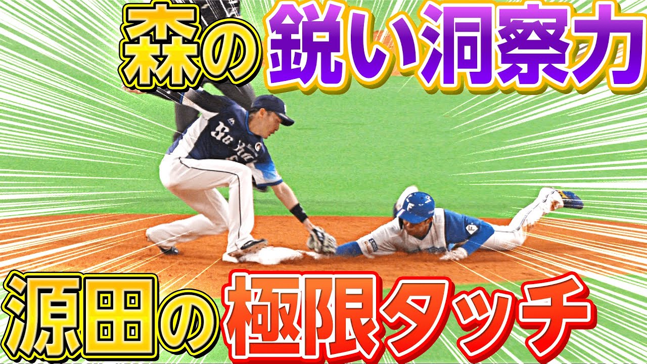 両選手の高い能力の合わせ技、埼玉西武・森友哉と源田壮亮のプレーで二塁走者を牽制アウトに!! 鋭い洞察力と極限タッチ、天才×たまらんをご堪能あれ。
